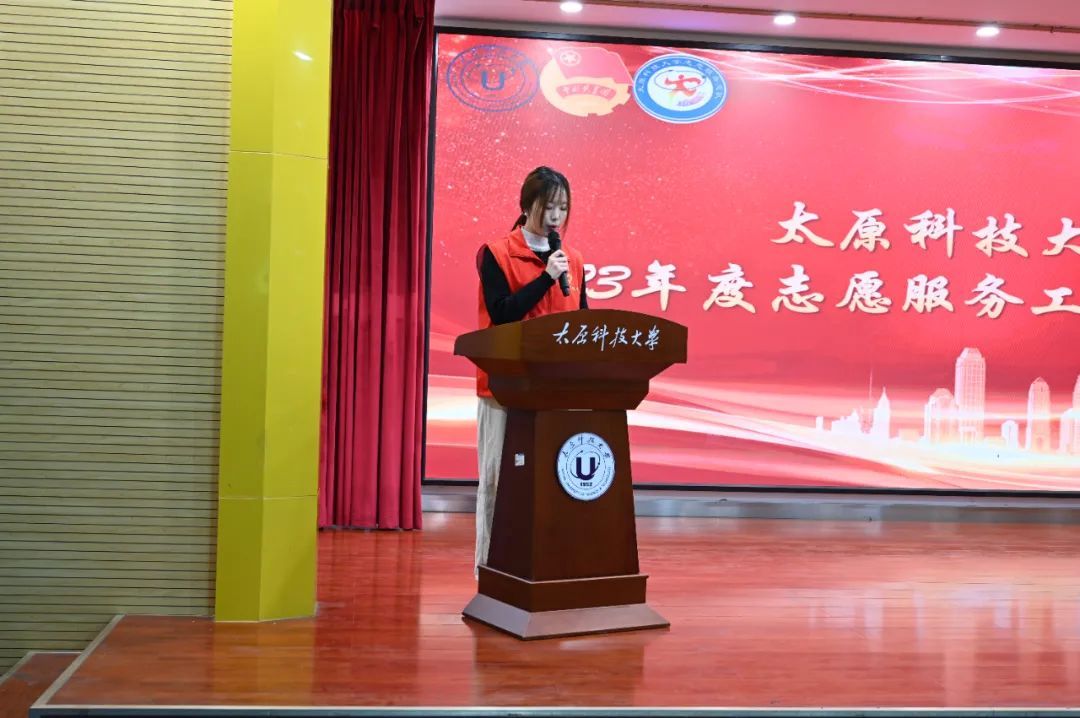 第八届志愿服务总队队长王意然宣读倡议书,她倡议广大青年学子加入到志愿者队伍中,投入到志愿服务当中,立足新时代、展现新作为,以青春梦想、用实际行动继续书写新时代的雷锋故事,开辟“人人关心、人人支持、人人参与”的志愿服务新格局。