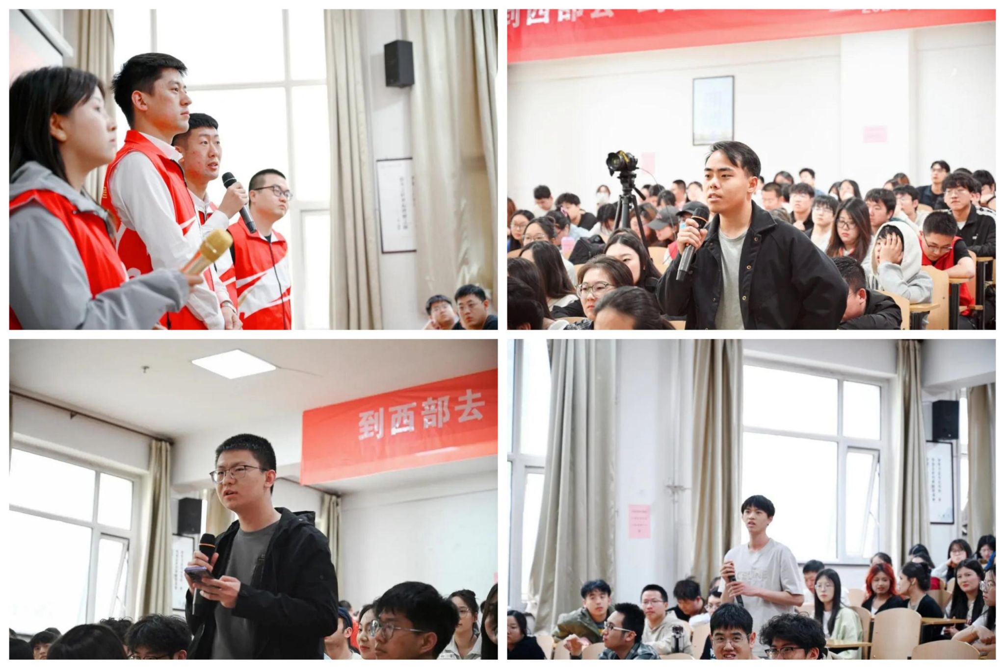 四位宣讲人结束分享后,志愿者们与现场同学开始互动环节,同学们积极提问,志愿者们耐心解答。随着互动的深入,现场氛围愈发活跃。同学们深入了解了西部计划的各项政策与具体实施细节,对志愿者们在西部地区的工作与生活状态有了更加直观而深刻的感受。他们表示,对参与西部计划这一伟大事业充满了期待与热情,他们将积极响应国家号召,勇担时代重任,书写属于自己的西部篇章。