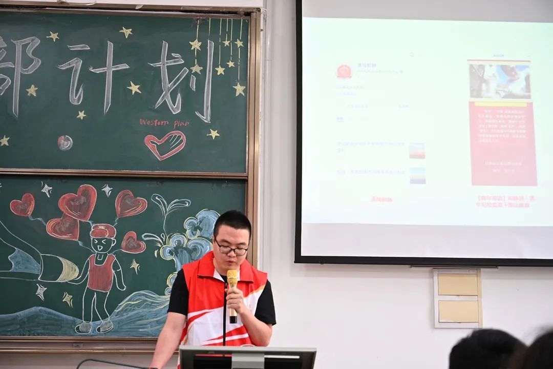 最后,志愿者田奇民深入阐述了参与西部计划的完整流程、具体服务内容、优厚生活待遇及全面政策福利。他着重分析了国家对西部计划志愿者的高度重视,以及所提供的全方位保障和激励措施。他的讲述让同学们对西部计划有了更加深入、全面的了解,激发了大家投身西部、贡献青春的决心与热情。