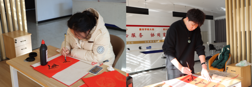 活动现场,墨香四溢,热闹非凡。老师和同学们齐聚一堂,挥毫泼墨,用苍劲有力的笔触、精湛的书法技艺,将心底对新年的美好期许化作一副副对仗工整、寓意吉祥的春联。一副副寓意吉祥的春联,将美好的祝愿融入笔墨之间,为离退休教职工送上了一份青春礼物。此次活动不仅是传统文化的传承与展现,也是新老两代科大人之间优良传统与深情厚谊的传承与展现。