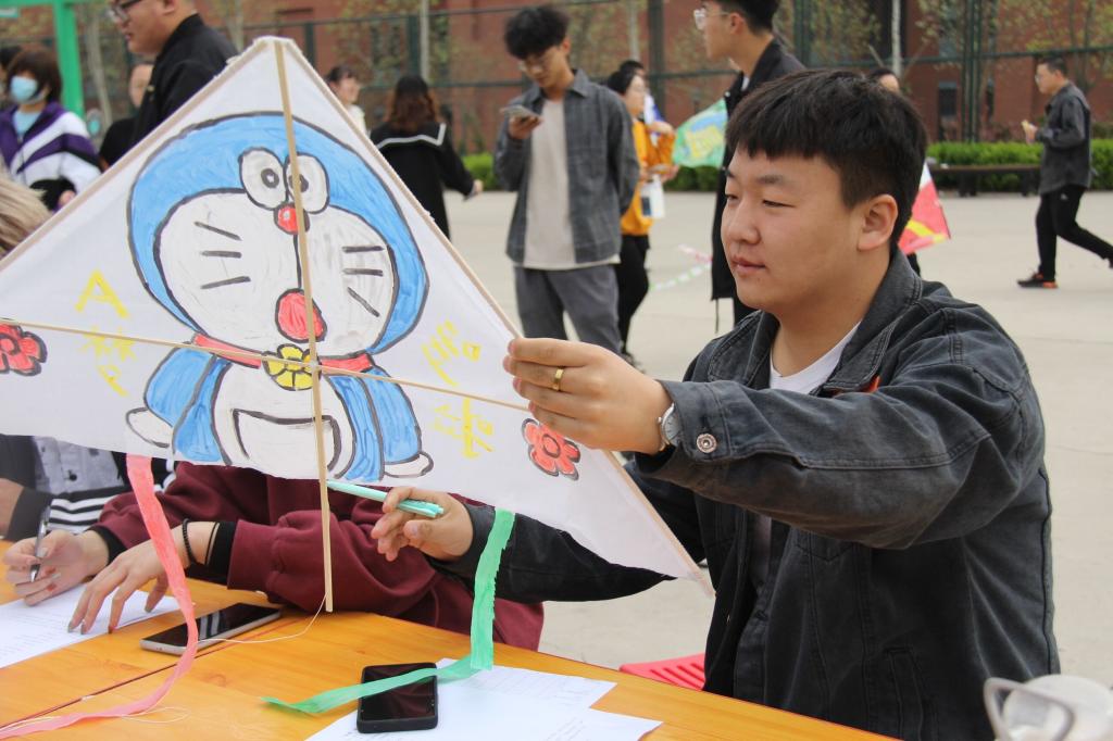 本次比赛由主办方提前发放竹签、纸张等材料,由同学们线下自行制作后带到比赛场地进行放飞。比赛开始后,由评委对每个参赛队伍制作的风筝的外观进行打分,各队伍制作的风筝各具特色:或绘画党徽以庆祝建党100周年,或醉心于哆啦A梦和哪吒等动漫海洋中,或别具一格的将脸谱画在风筝上表示他们对传统文化的喜爱……其中最让人惊叹的是艺术学院的同学们将国风特色的漫画人物栩栩如生的呈现在了风筝上,在场的每个人都赞叹不已。