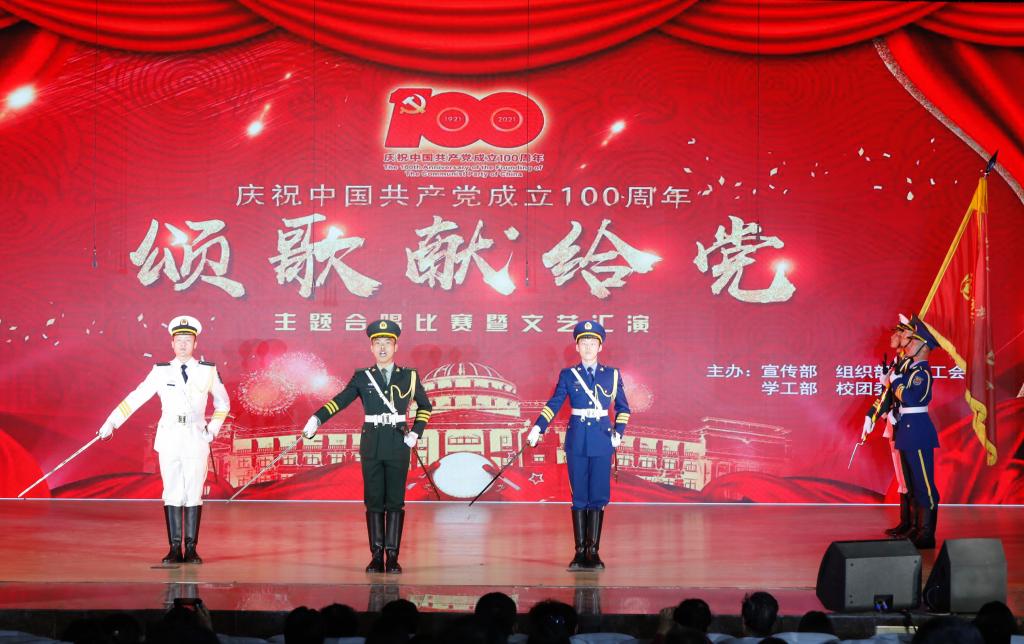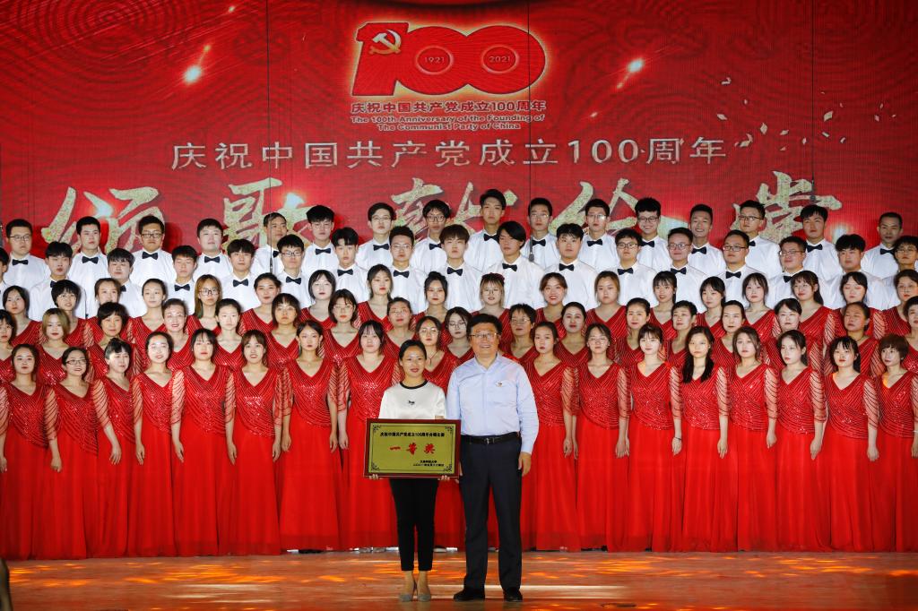 为庆祝中国共产党成立100周年,歌颂中国共产党的伟大历程和丰功伟绩,5月24日下午3时,校宣传部、组织部、学工部、校工会、校团委在校工会大礼堂联合举办了庆祝中国共产党成立100周年“颂歌献给党”主题合唱比赛暨文艺汇演。