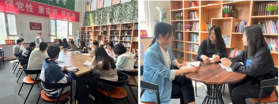 经济与管理学院本科生第五党支部积极深化拓展党员理论学习教育,探索形成“轮流讲、相互议、共同学、实践行”理论学习模式。5月8日,支部在学院主题教育专题阅读室开展学习分享会,学生党员在个人自学、集中学习的基础上,联系自身实际选取学习主题,深入挖掘相关素材案例,轮流上台进行学习分享,用小故事讲清大道理,并将所思所获落实到实际行动中,推动构建“学中讲、讲中干、干中信”的学习成长闭环。
