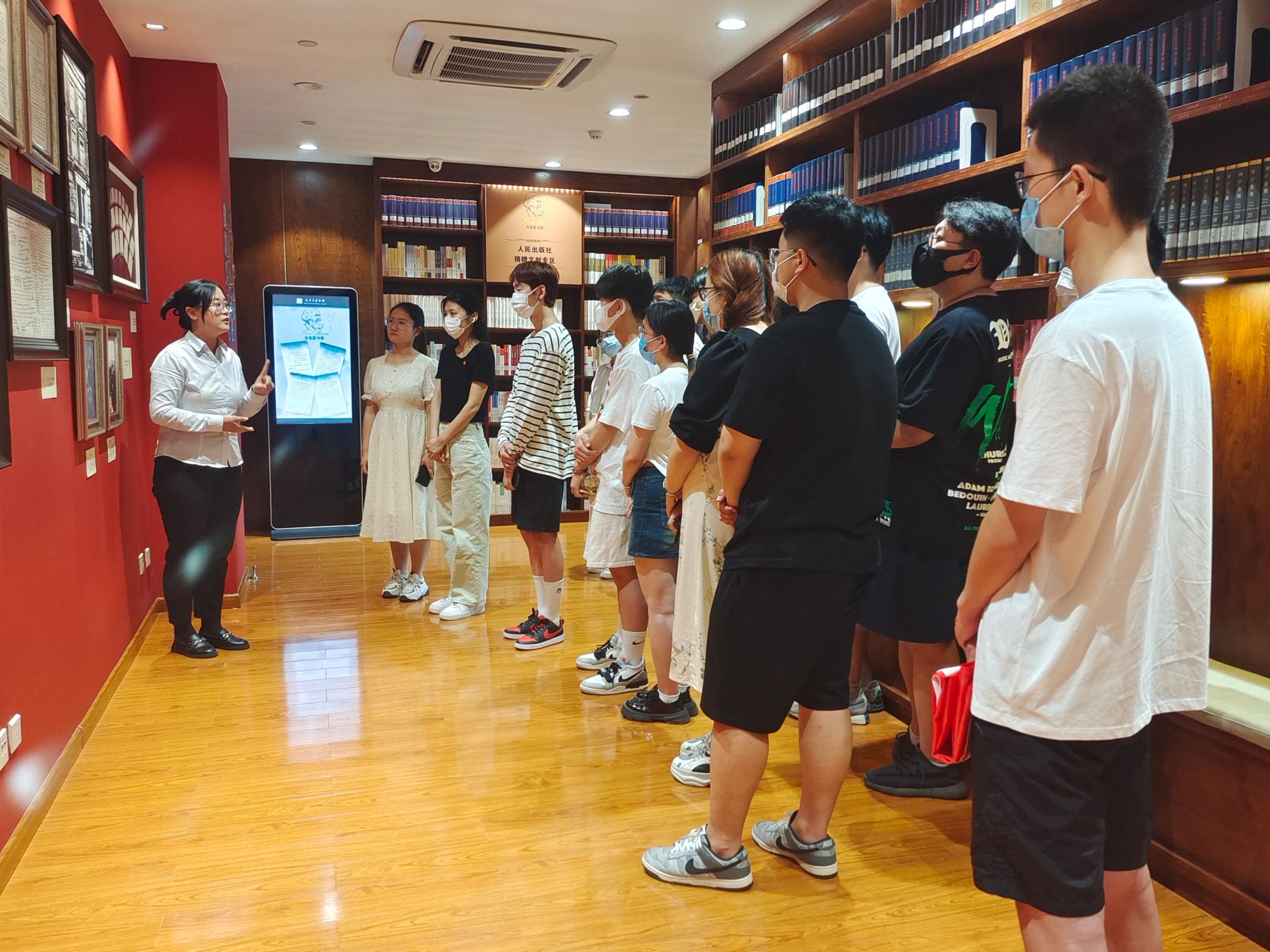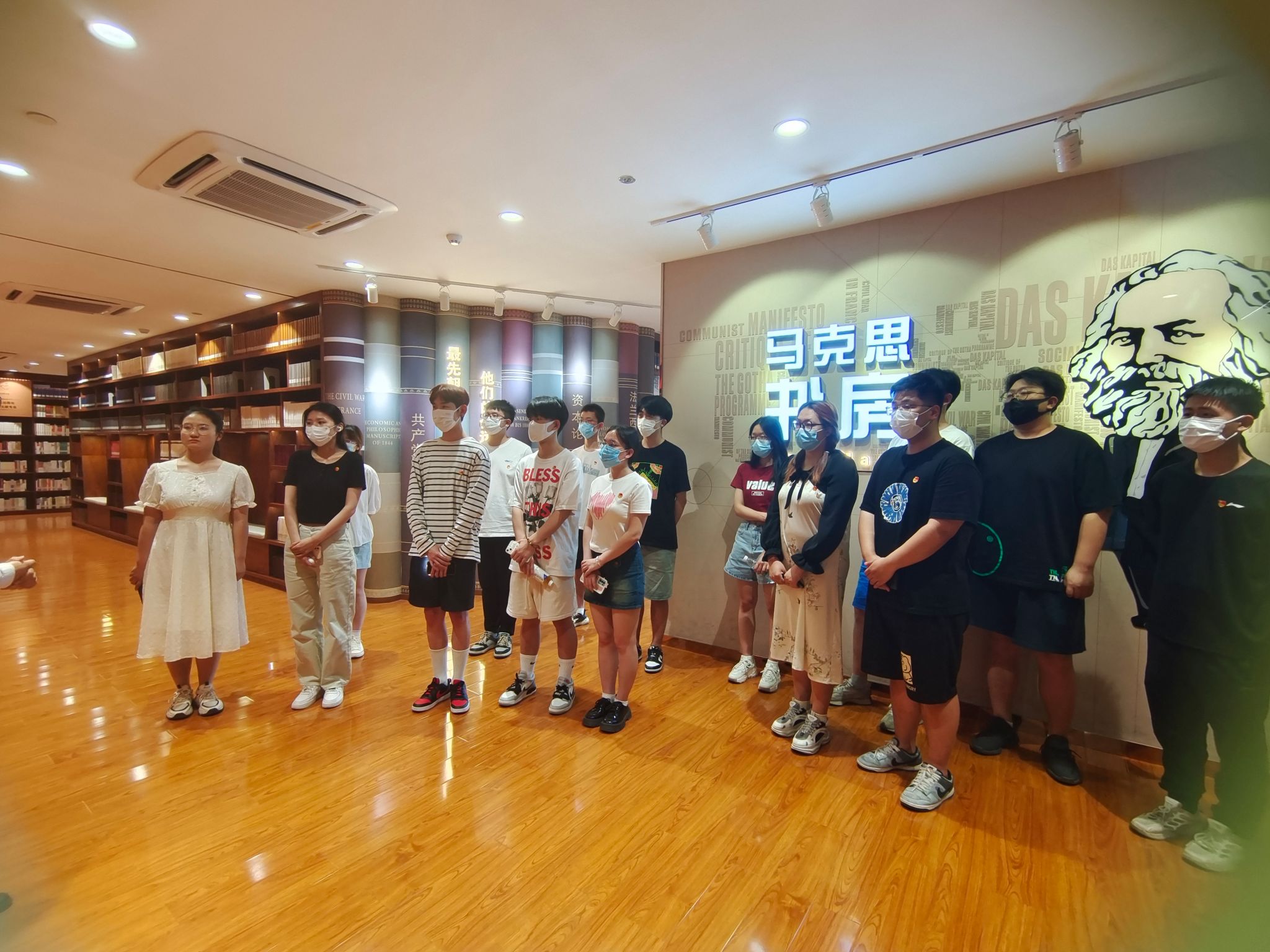 走进书房,入口处的马克思画像引人注目,像中马克思须发皆白,身着燕尾服,目光如炬,眼眸中流露出坚毅的神情。馆内环境清净淡雅,两万两千余册藏书沉淀着这一人类历史上最恢弘丰硕的精神财富。围绕着展览展示区的油画、图片等实物材料,一堂直击心扉的思政课火热开讲。随着讲解不断深入,全体同学脑海中都勾画出一个不畏艰险、皓首穷经、矢志不渝追求真理的光辉形象。“如果我们选择了最能为人类幸福而工作的职业,那么,重担就不能把我们压倒。”这个马克思广为人知的名言,也深深刻在每一位同学的心底。