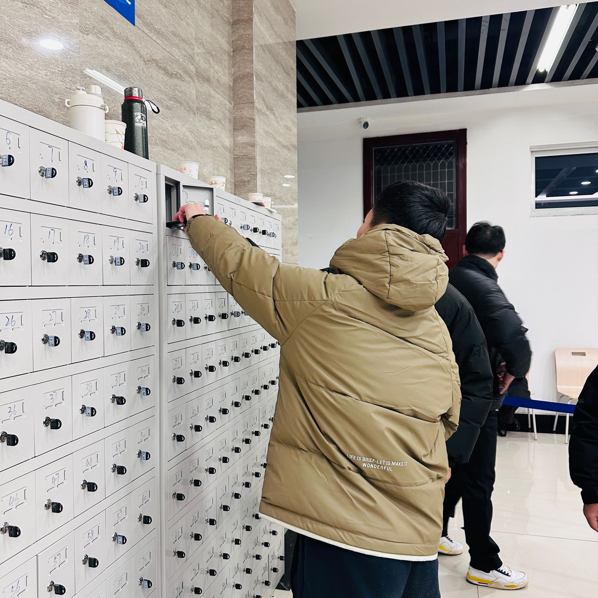 优化考生服务,竭诚为考生办好暖心实事。考试期间,为保证考试顺利进行,校园里设立清晰的指引标识,科学规划研考路线,明确考生有关事项,工作人员实时在岗,用心用情护航研考。教室内外有详细的考场分布表,包含考场楼、考场代码、考场地点、教室等具体信息,便于考生迅速了解情况,顺畅地做好考前入场准备。学校专门配备手机存储保管箱,从方便考生快速“检、存、取”的角度,重新优化流程设计,志愿者在考场入口、手机存放区和智能安检门等区域加强指引,做好引导工作,极大缩短了考生进场时间和排队时间;在考点门口设置热水和红糖水饮用点,为考生提供舒适的考试环境,在寒冷天气,为温暖考生,为考生送去一份暖心的关怀。