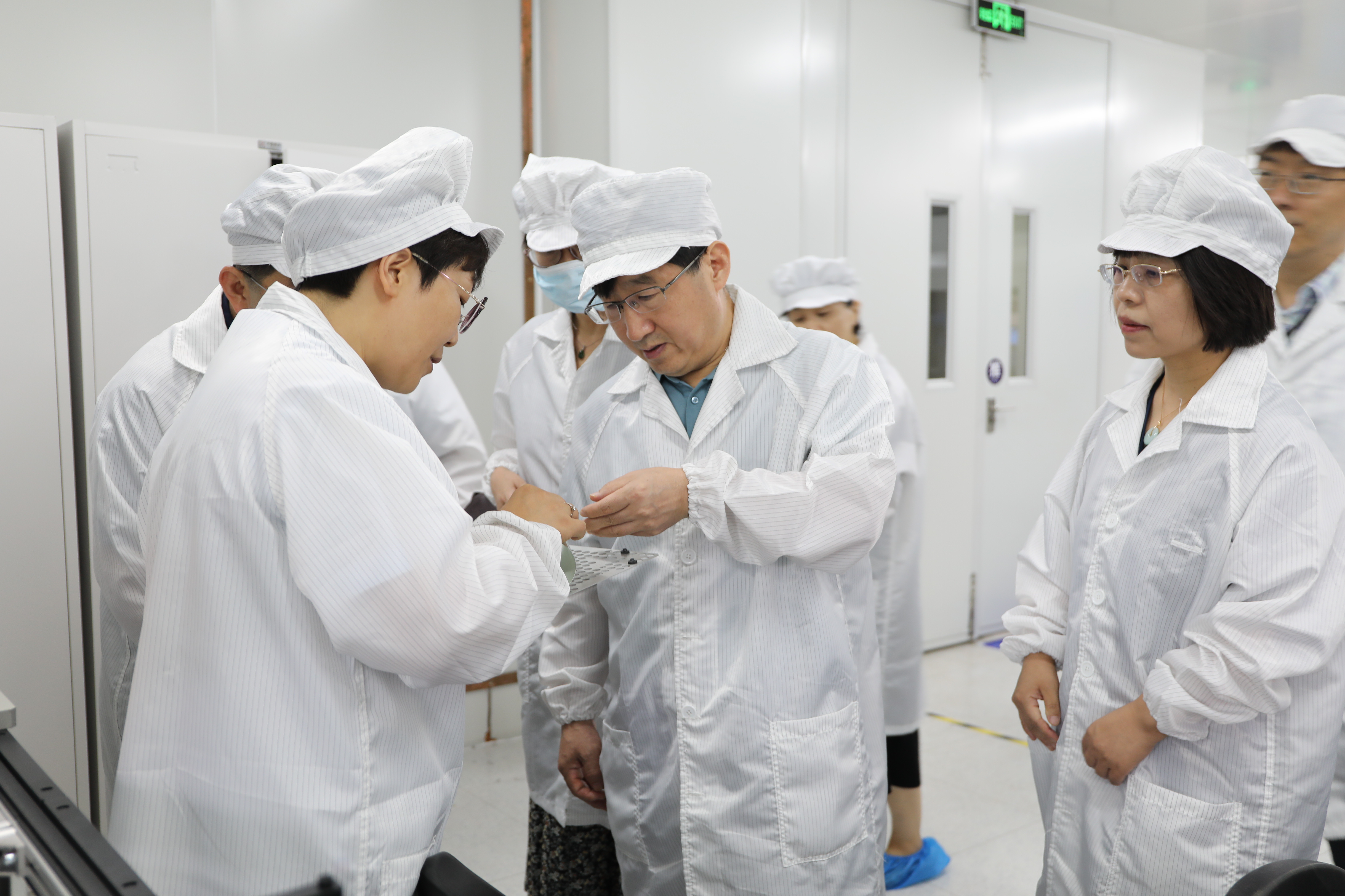 调研人员参观了电子二所微电子装备装调中心、微电子共烧陶瓷器件数字化车间。