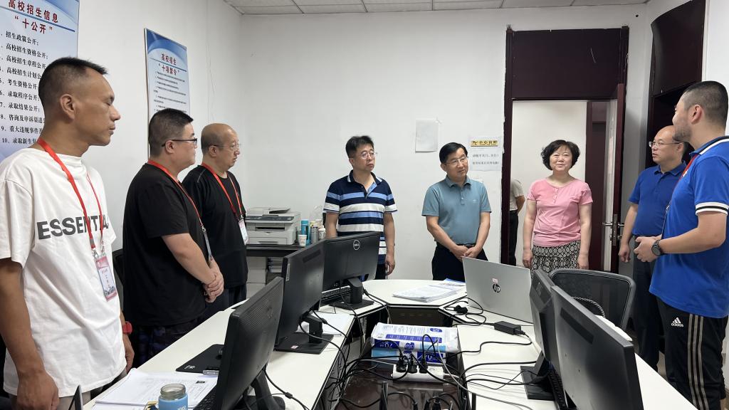 7月25日,白培康校长前往学校本科招生录取工作现场,检查指导学校2022年本科招生录取工作,并向招生录取工作人员表示慰问,副校长侯华、教务部部长李虹陪同检查。