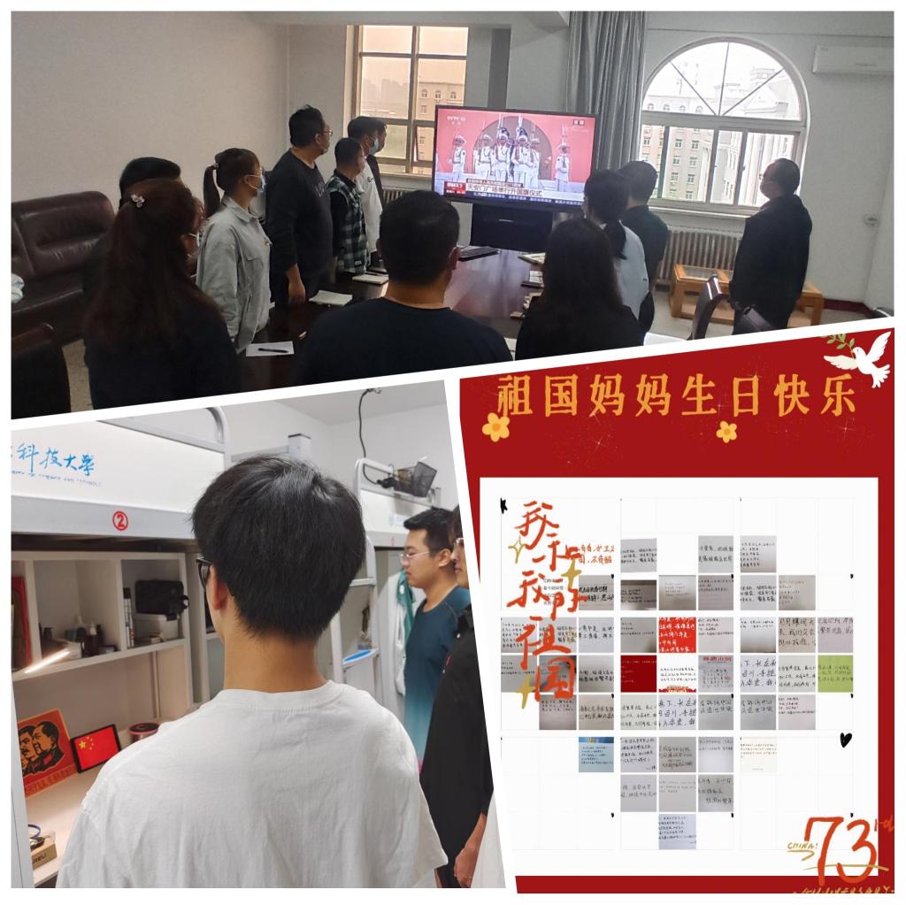 各临时党支部、党员先锋岗、入党积极分子先锋队分别以部门、楼层、专业、班级等为单位,在值班室、宿舍等不同地点开展线上观看升旗仪式、手写贺卡送祝福、“学国史·迎国庆”宣讲、观看《领航中国》、学习防疫知识等一系列主题教育活动,做到“线上学、线下做”同步进行。大家纷纷表示,将以更加坚定的信心、决战的态势,积极投入到这次疫情阻击战中,以“无私奉献、誓保平安”为使命,夺取这场“战斗”的最终胜利。