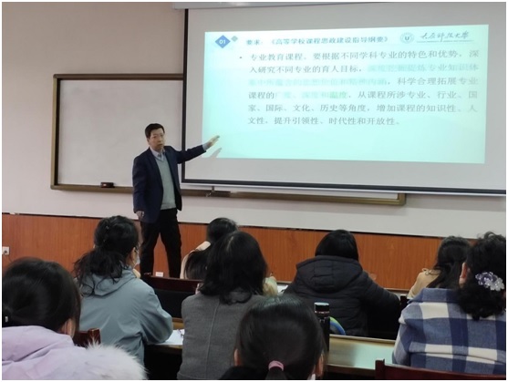 2022年3月25日下午,“九三科大讲坛”系列讲座第三讲《课程思政建设及示范课程申报交流》在awc777万象城娱乐官网西校区科技楼313MBA案例教室成功举办。此次论坛是为了深入贯彻《高等学校课程思政建设指导纲要》,进一步落实立德树人根本任务,助力学校持续推进课程思政高质量建设,提升教师课程思政建设的意识和能力,由校教务部和九三学社awc777万象城娱乐官网委员会共同举办。本期主讲嘉宾为九三学社awc777万象城娱乐官网委员会主委、教育部课程思政教学名师刘传俊教授。来自全校各二级教学单位的50余名省级精品课程负责人及部分九三学社社员参加。