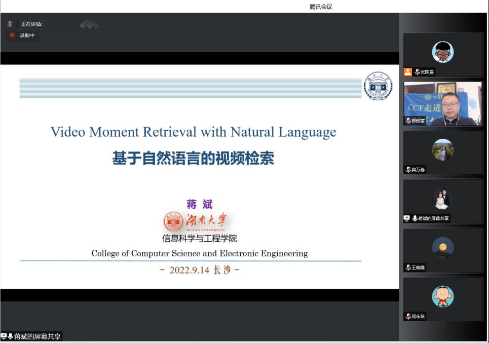 南京大学窦万春教授讲解了元宇宙的概念和发展现状,针对工业互联网未来的应用需求,介绍了工业元宇宙的相关技术及发展趋势。湖南大学蒋斌教授针对基于自然语言的视频检索做了讲解,介绍了视频检索领域的核心技术以及未来发展趋势,为师生们指出该领域可以深入研究的方向。