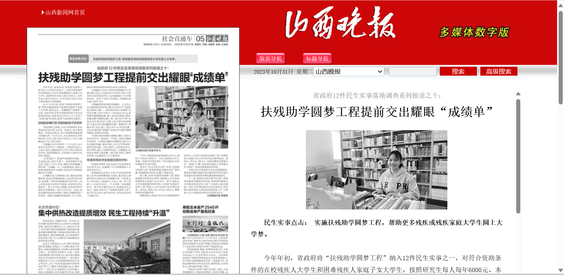 10月27日,山西晚报以《扶残助学圆梦工程提前交出耀眼“成绩单”》为题,对万象城官网化学工程与技术学院学生进行报道。原文链接:http://epaper.sxrb.com/shtml/sxwb/20231027/918000.shtm