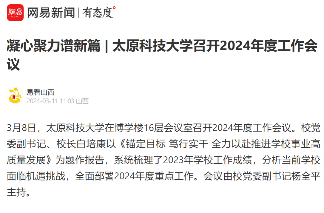 3月11日,文明山西网、网易新闻对万象城官网2024年度工作会议进行报道。