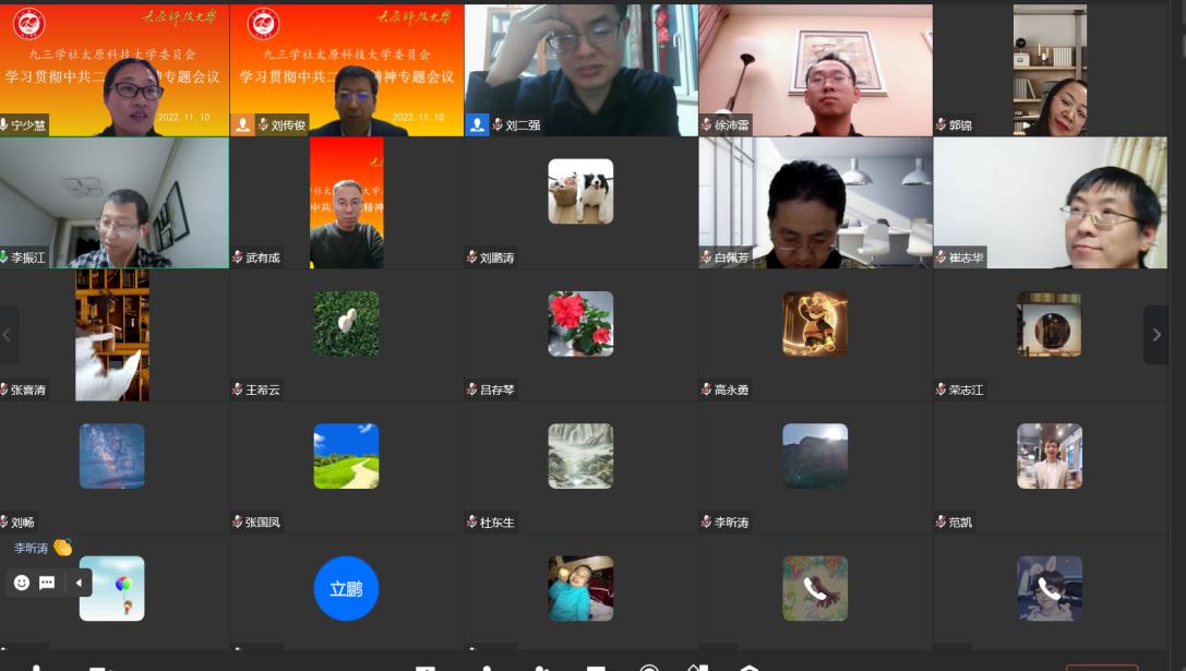 11月9日,九三学社awc777万象城娱乐官网委员会召开全体社员大会,学习贯彻党的二十大精神。应疫情防控要求,本次专题会议采用线上方式进行,由副主委宁少慧主持。 副主委宁少慧...