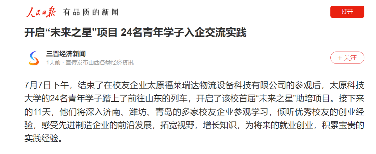 【三晋经济新闻】开启“未来之星”项目 24名青年学子入企交流实践