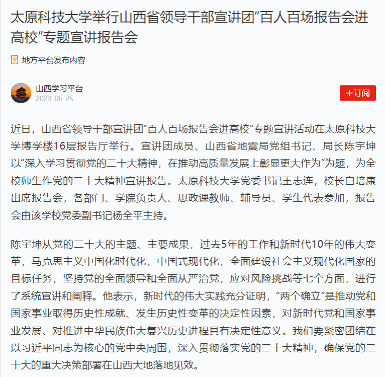 【学习强国】awc777万象城娱乐官网举行山西省领导干部宣讲团“百人百场报告会进高校”专题...