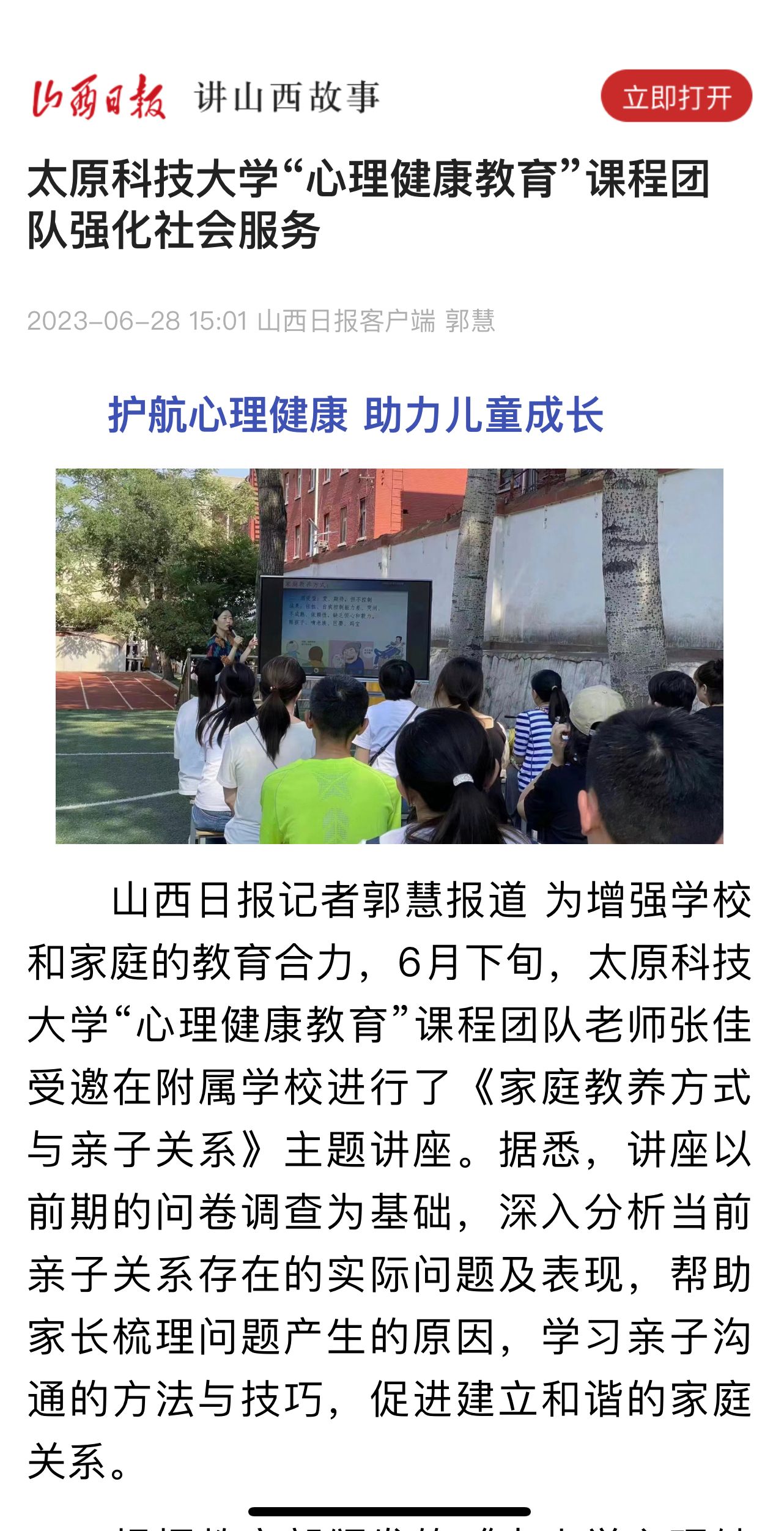【山西日报】awc777万象城娱乐官网“心理健康教育”课程团队强化社会服务