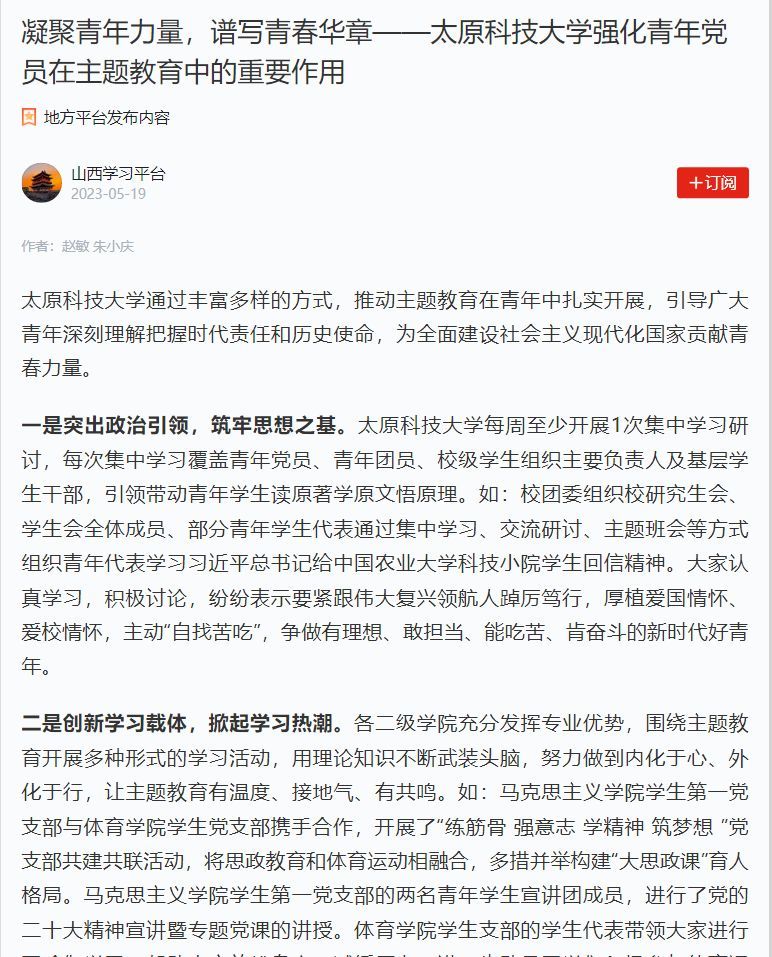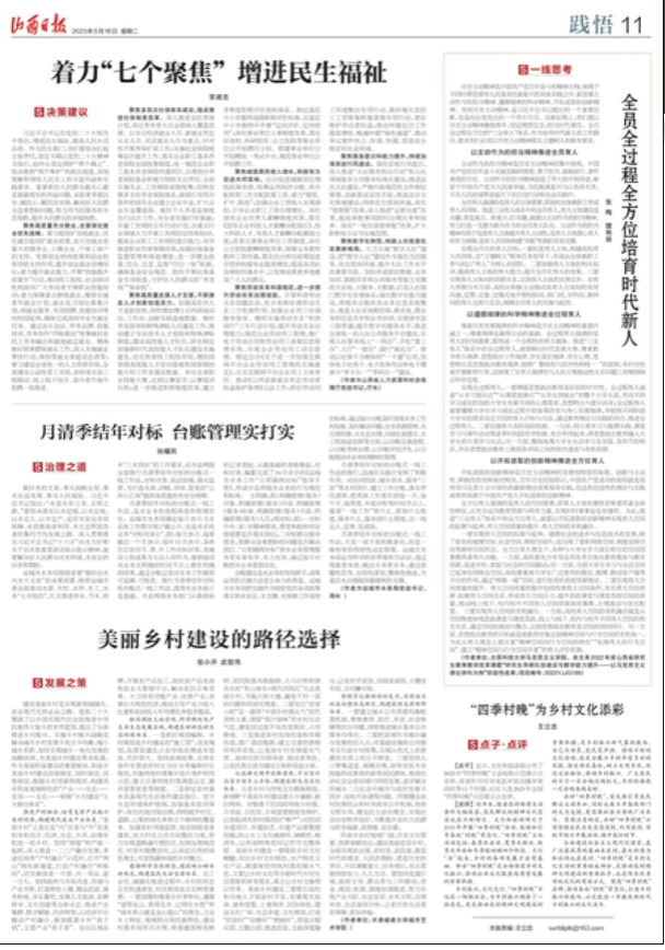 近日,山西日报践悟版刊登万象城官网理论文章《全员全过程全方位培育时代新人》。