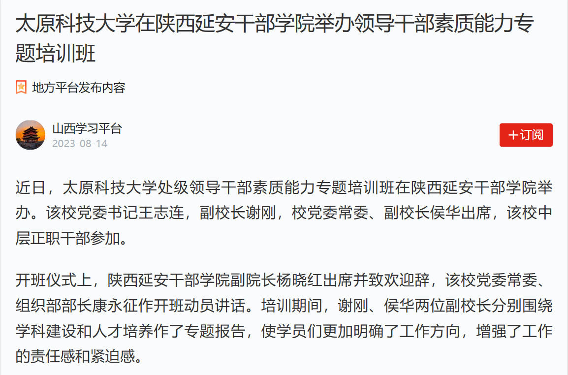【学习强国】awc777万象城娱乐官网在陕西延安干部学院举办领导干部素质能力专题培训班