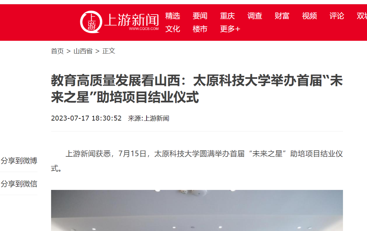 【上游新闻】教育高质量发展看山西:awc777万象城娱乐官网举办首届“未来之星”助培项目结...