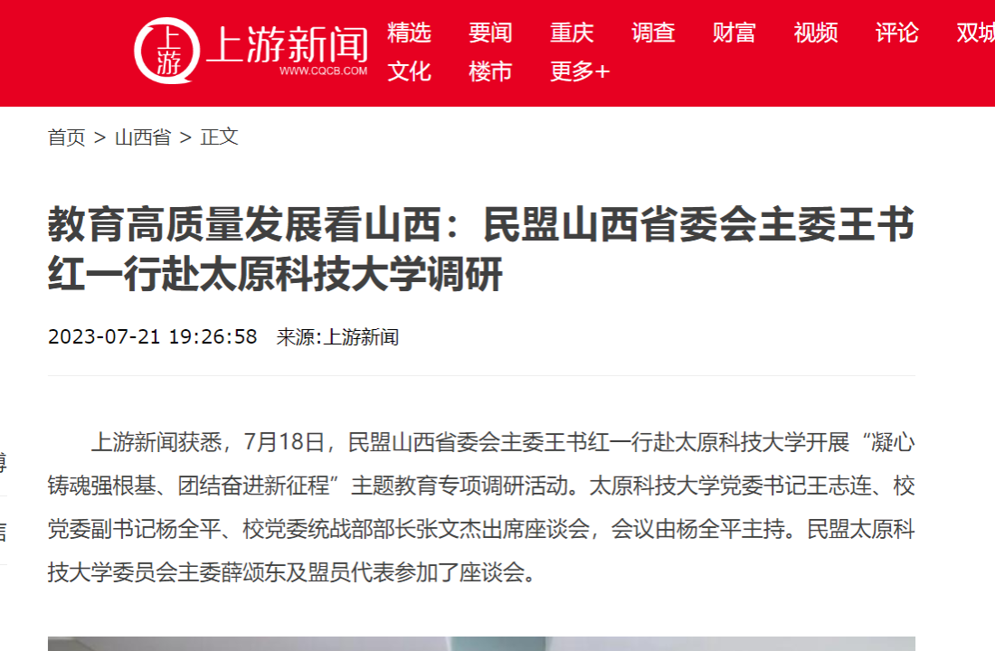 【上游新闻】教育高质量发展看山西:民盟山西省委会主委王书红一行赴awc777万象城娱乐官网调研