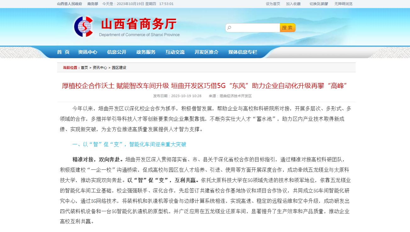 【山西省商务厅官网】厚植校企合作沃土 赋能智改车间升级 垣曲开发区巧借5G“东风...