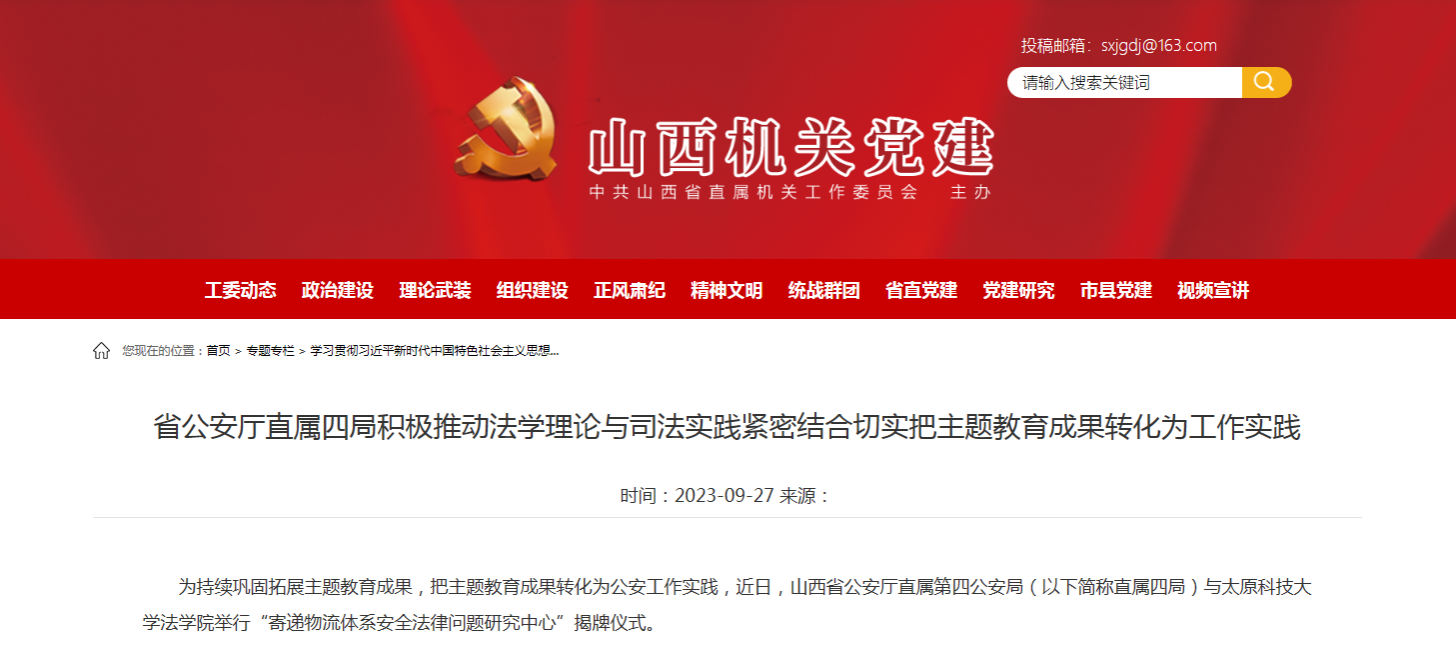 9月27日,山西机关党建以《省公安厅直属四局积极推动法学理论与司法实践紧密结合切实把主题教育成果转化为工作实践》为题,报道山西省公安厅直属第四公安局与万象城官网法学院...