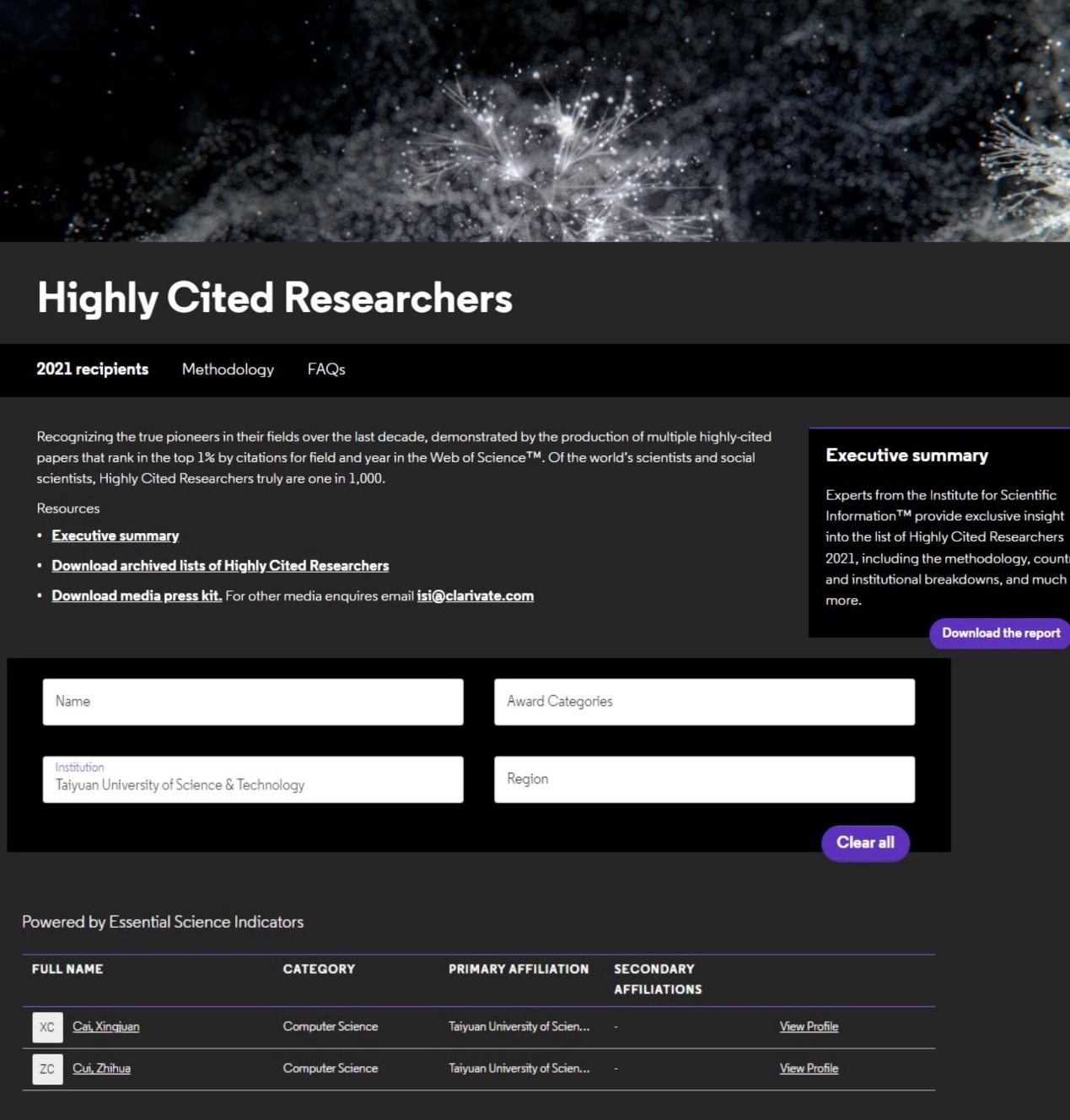 热烈祝贺万象城官网崔志华教授和蔡星娟教授入选2022年度“全球高被引科学家”