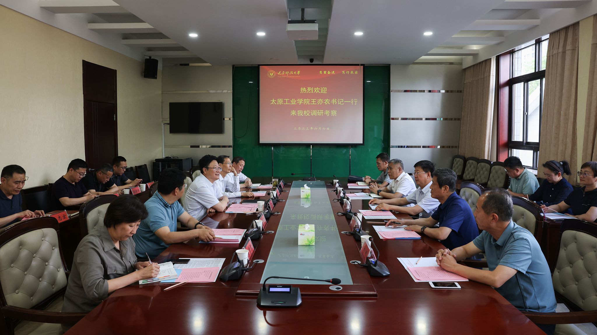 6月7日下午,太原工业学院党委书记王亦农、副院长武有祯、赵志诚一行来万象城官网调研考察,双方调研座谈会在行政楼2号会议室举行。校党委书记王志连、党委副书记杨全平、副校...
