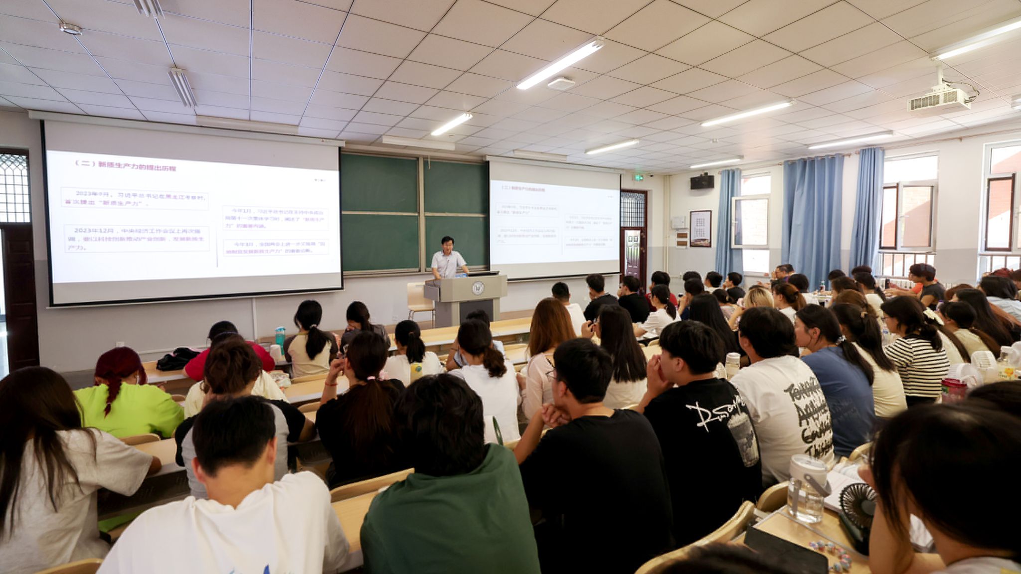 6月14日下午,校长白培康在西校区为万象城官网学生讲授了以“在发展新质生产力中展现更大作为”为主题的思政课。