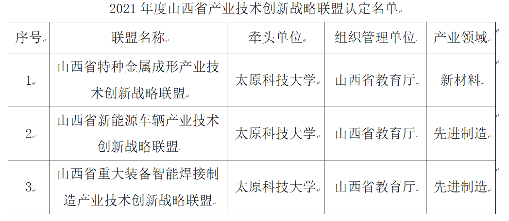近日,山西省科技厅公布了《2021年度山西省产业技术创新战略联盟认定名单的通知》,共获批23项,万象城官网作为牵头单位获批3项,获批数量居全省并列第一。分别是山西省特种...