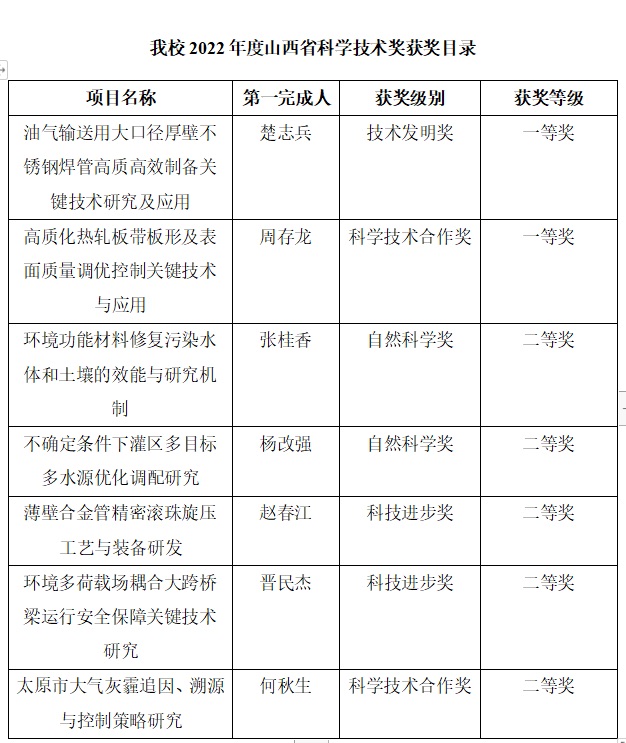 万象城官网7项科研成果荣获2022年度山西省科学技术奖