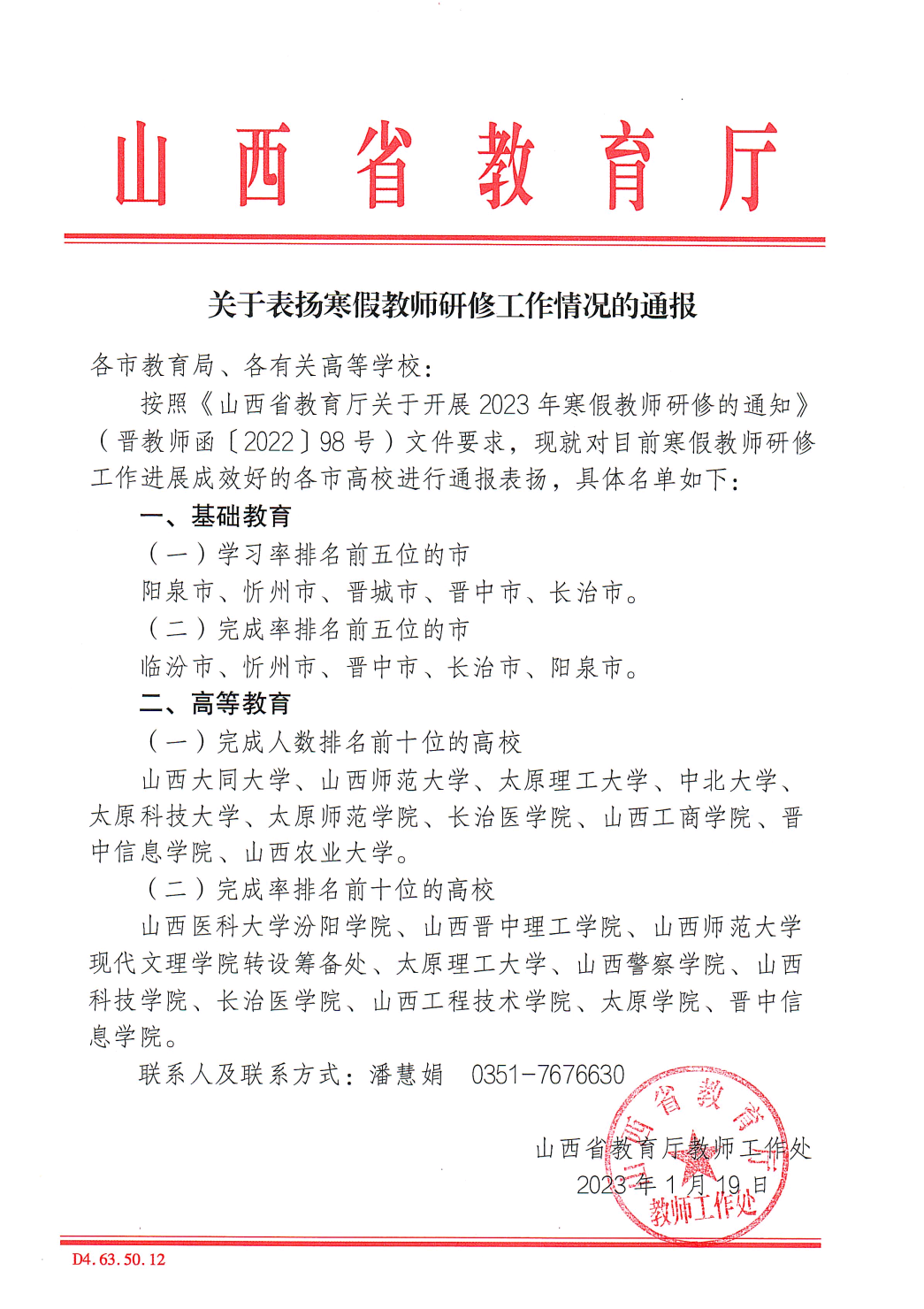 勇毅前行,再接再厉——万象城官网寒假教师研修工作获山西省教育厅通报表扬