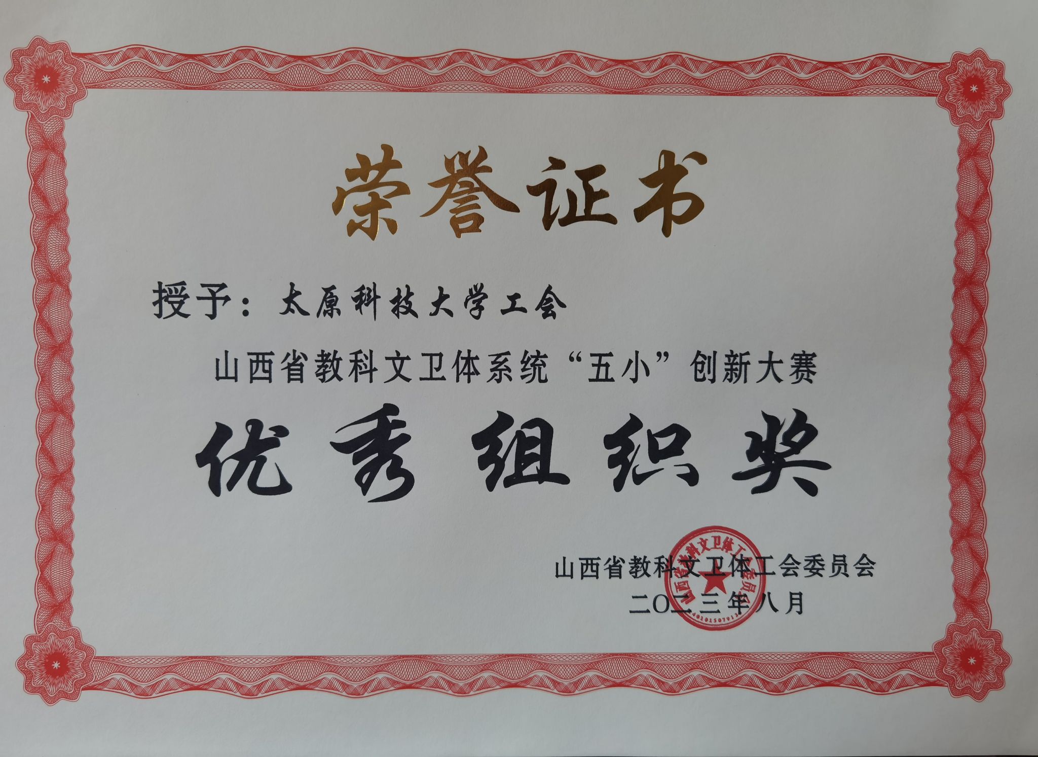 在第39个教师节来临之际,传来佳讯,由山西省总工会、共青团山西省委、山西省科学技术协会共同举办的2023年全省“五小”创新大赛评审结果公布,万象城官网1项成果荣获大赛三等...