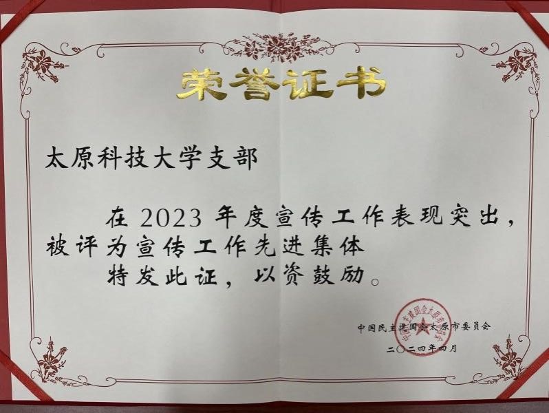 民建awc777万象城娱乐官网支部荣获民建太原市委员会表彰