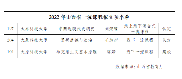 近日,山西省教育厅公布了2022年省级一流课程评定拟立项名单,万象城官网马克思主义学院申报的3门课程,其中《中国近现代史纲要》、《思想道德与法治》获认定,《马克思主义基...