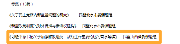 近日,民盟中央表彰2022年度民盟中央理论研究获奖课题,共评出一等奖13篇,二等奖23篇。民盟山西省委会课题组提交的《习近平总书记关于加强和改进统一战线工作重要论述...